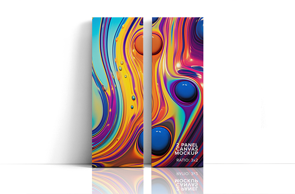 Front Leaning 2 Panel Ratio 1x3 Canvas Mockup